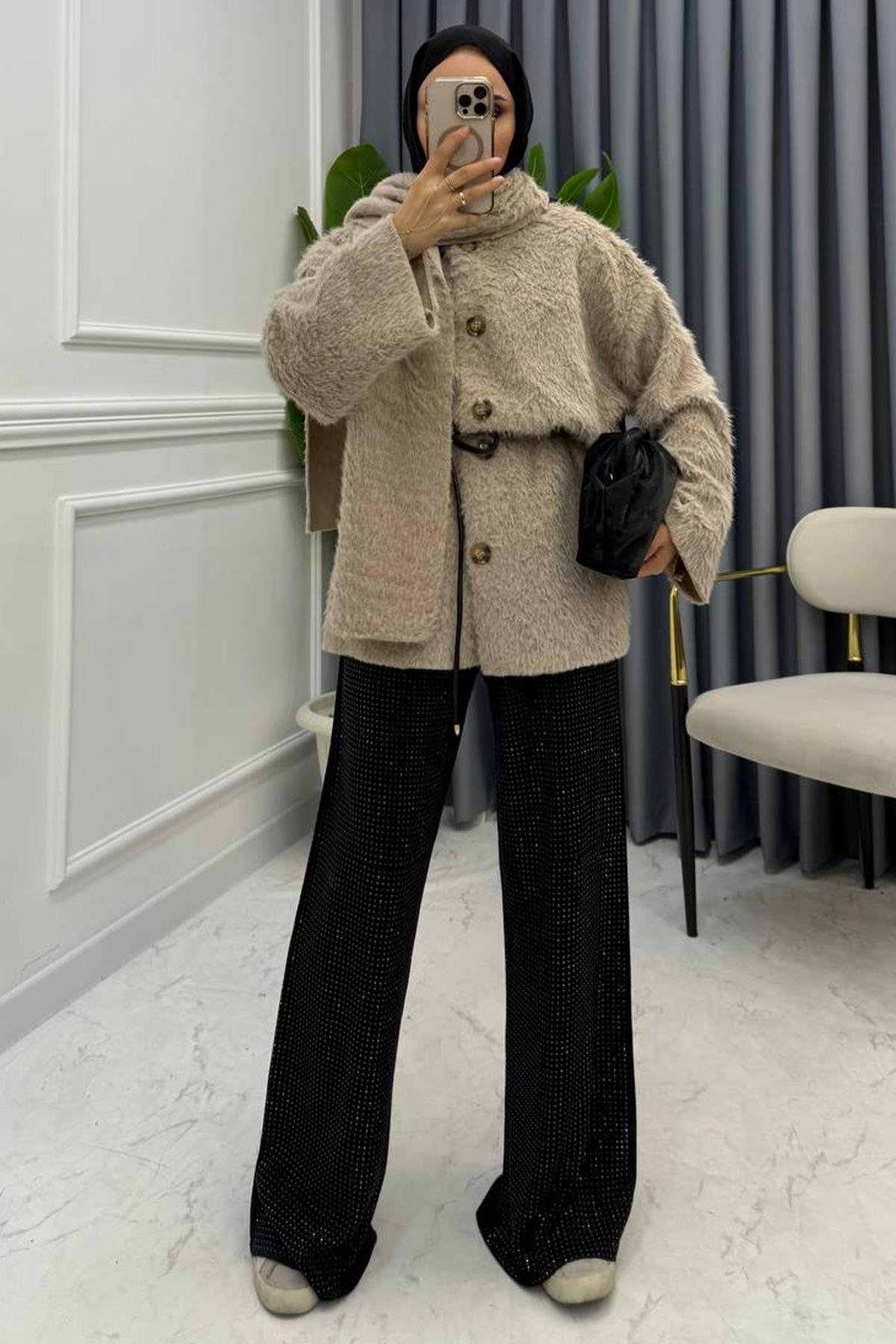 ATKI DETAY DÜĞMELİ HIRKA VİZON (203461)