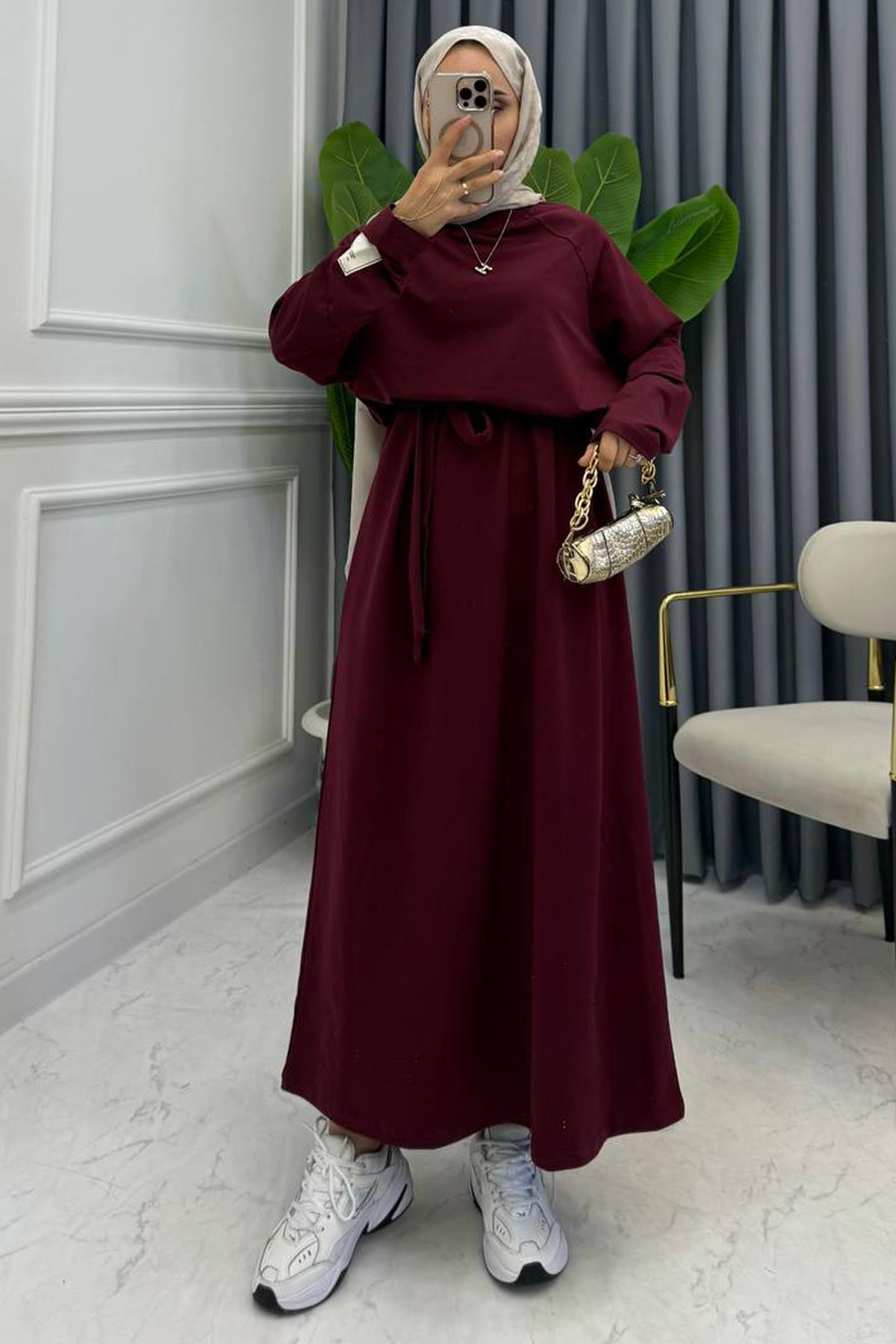 BAĞLAMALI PENYE ELBİSE BORDO (203365)