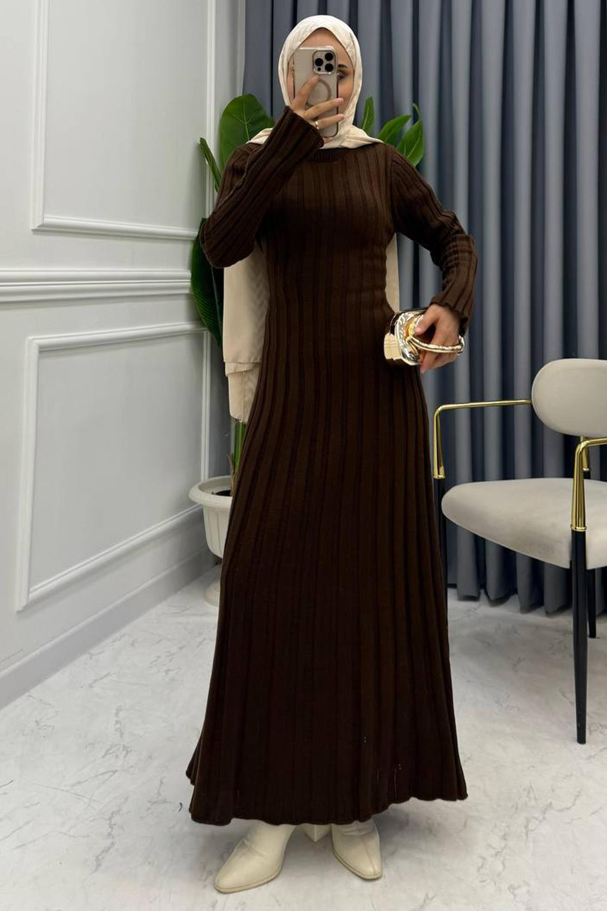 BELİ BAĞLAMALI TRİKO ELBİSE KAHVE (203464)