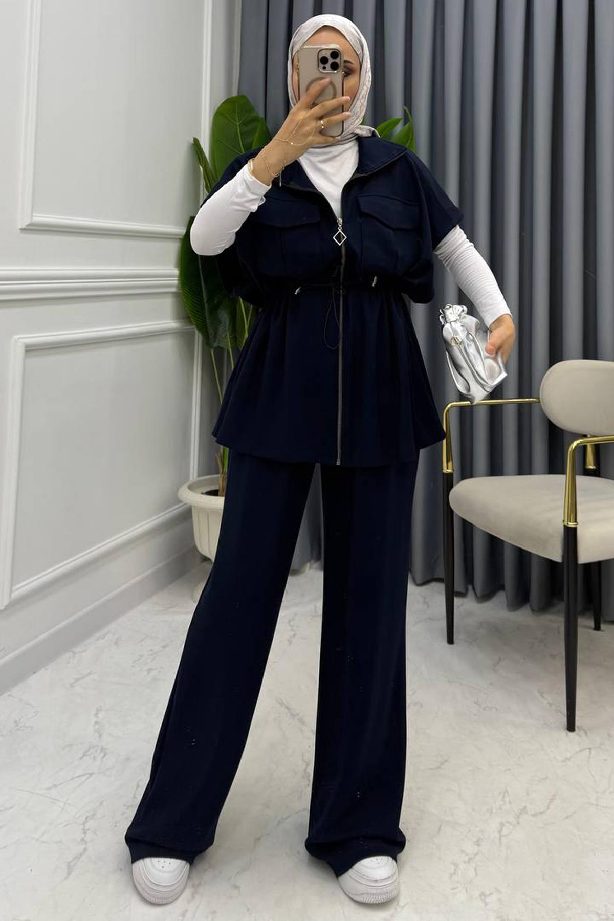 BELİ LASTİKLİ YELEK TAKIM LACİVERT (203451)