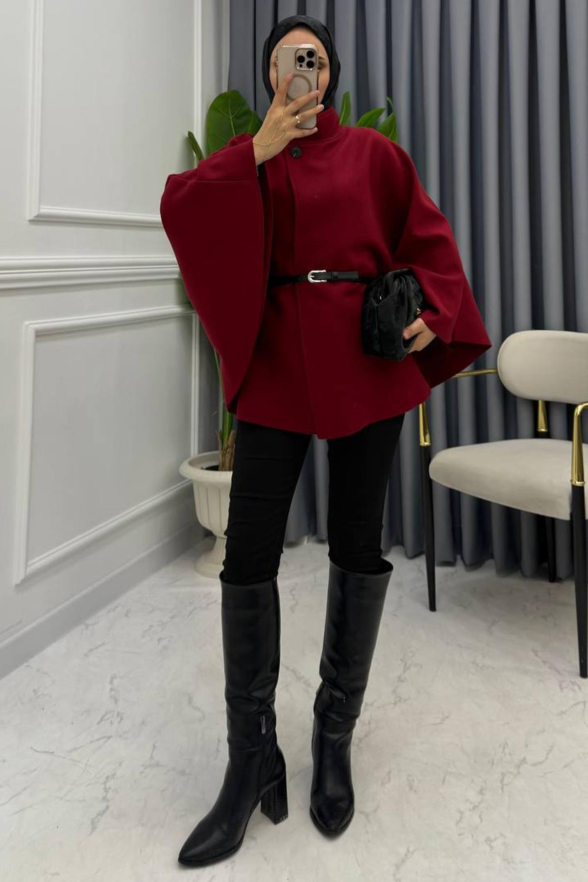 DERİ KEMERLİ PANÇO BORDO (203465)