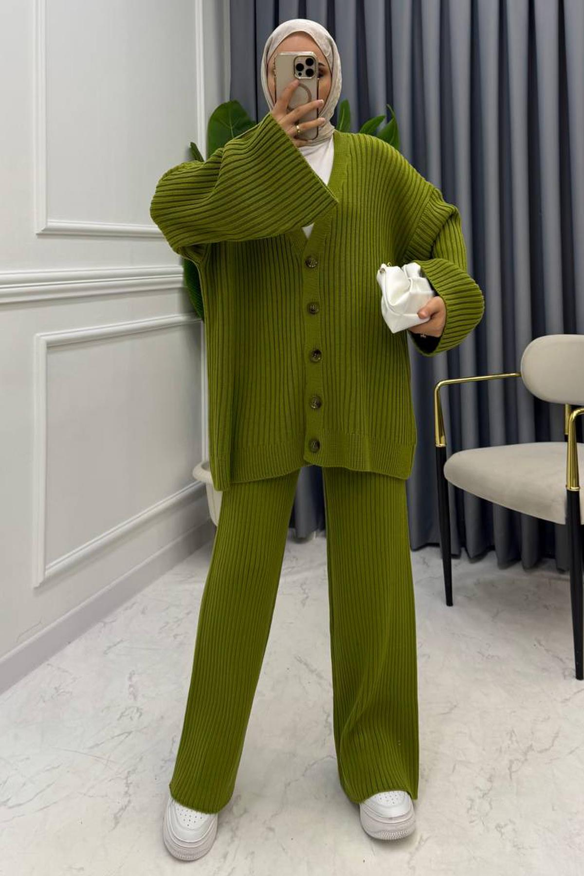 DÜĞMELİ İKİLİ TAKIM YAĞ YEŞİLİ (203455)