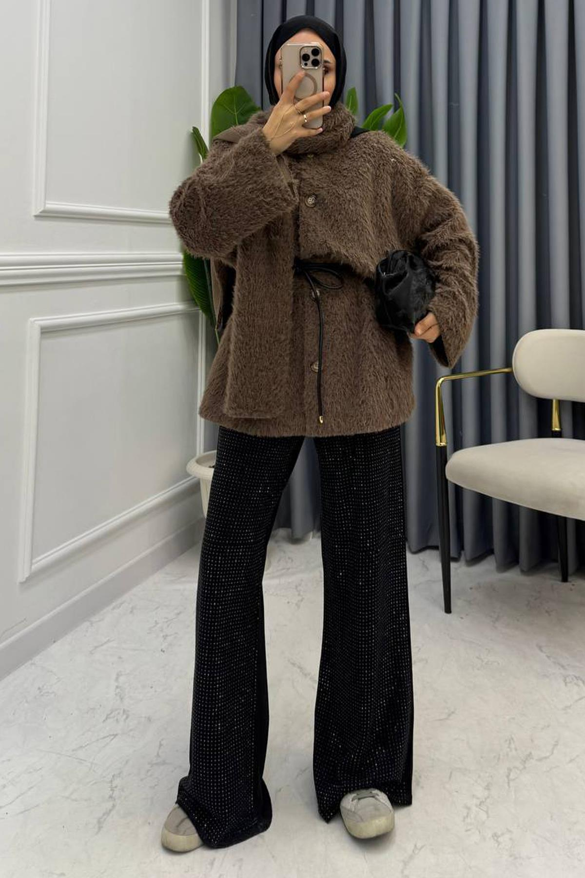 ATKI DETAY DÜĞMELİ HIRKA KAHVE