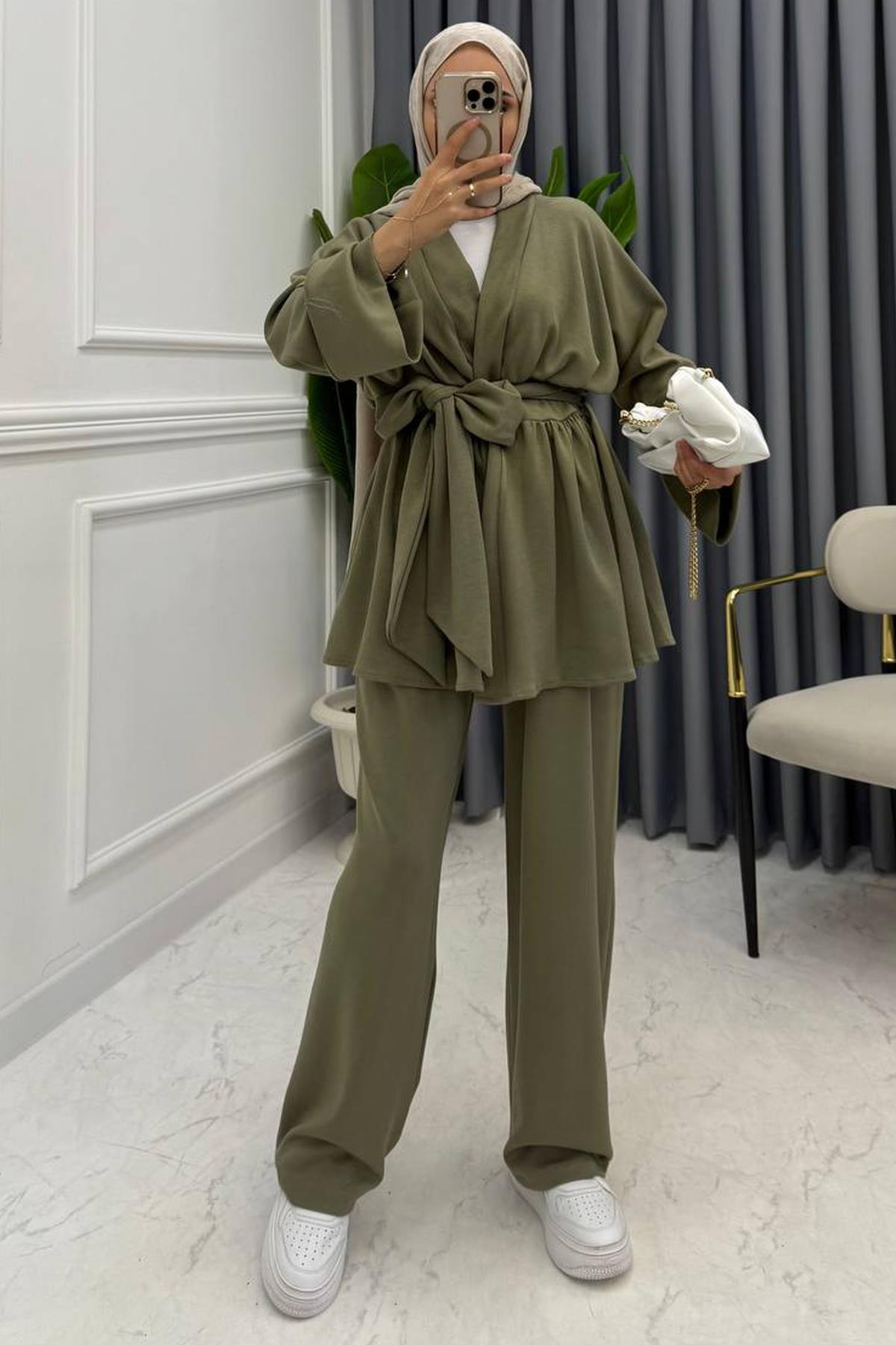 Oysho kumaştır, beli kendinden bağlamalıdır. Pantolon beli lastiklidir.