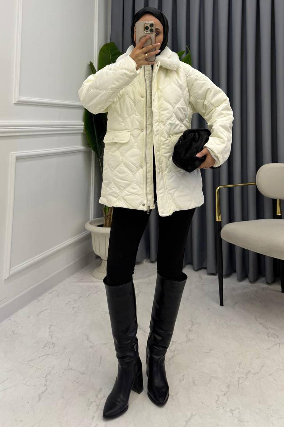 Kapitone kumaşa sahiptir, içi astarlıdır.