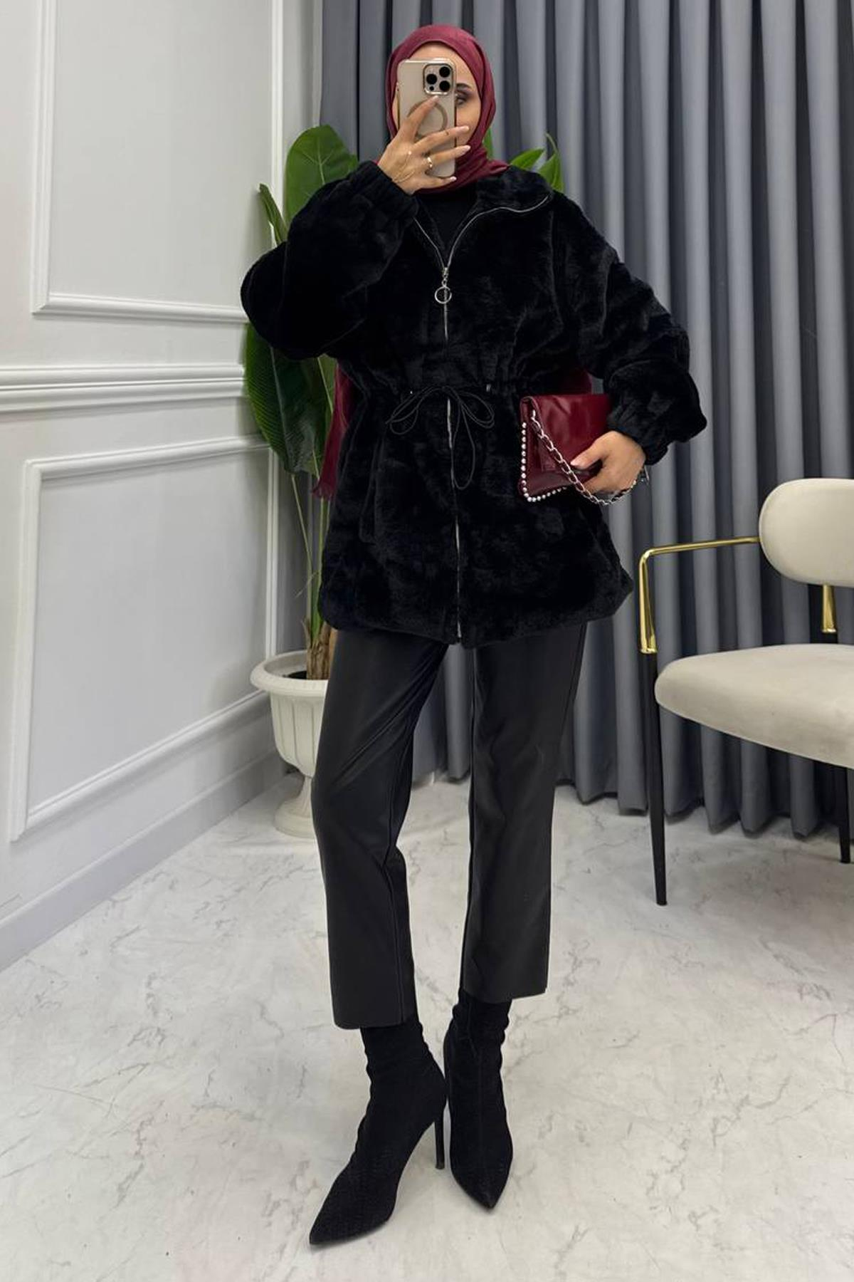 FERMUARLI PELUŞ CEKET SİYAH (203444)