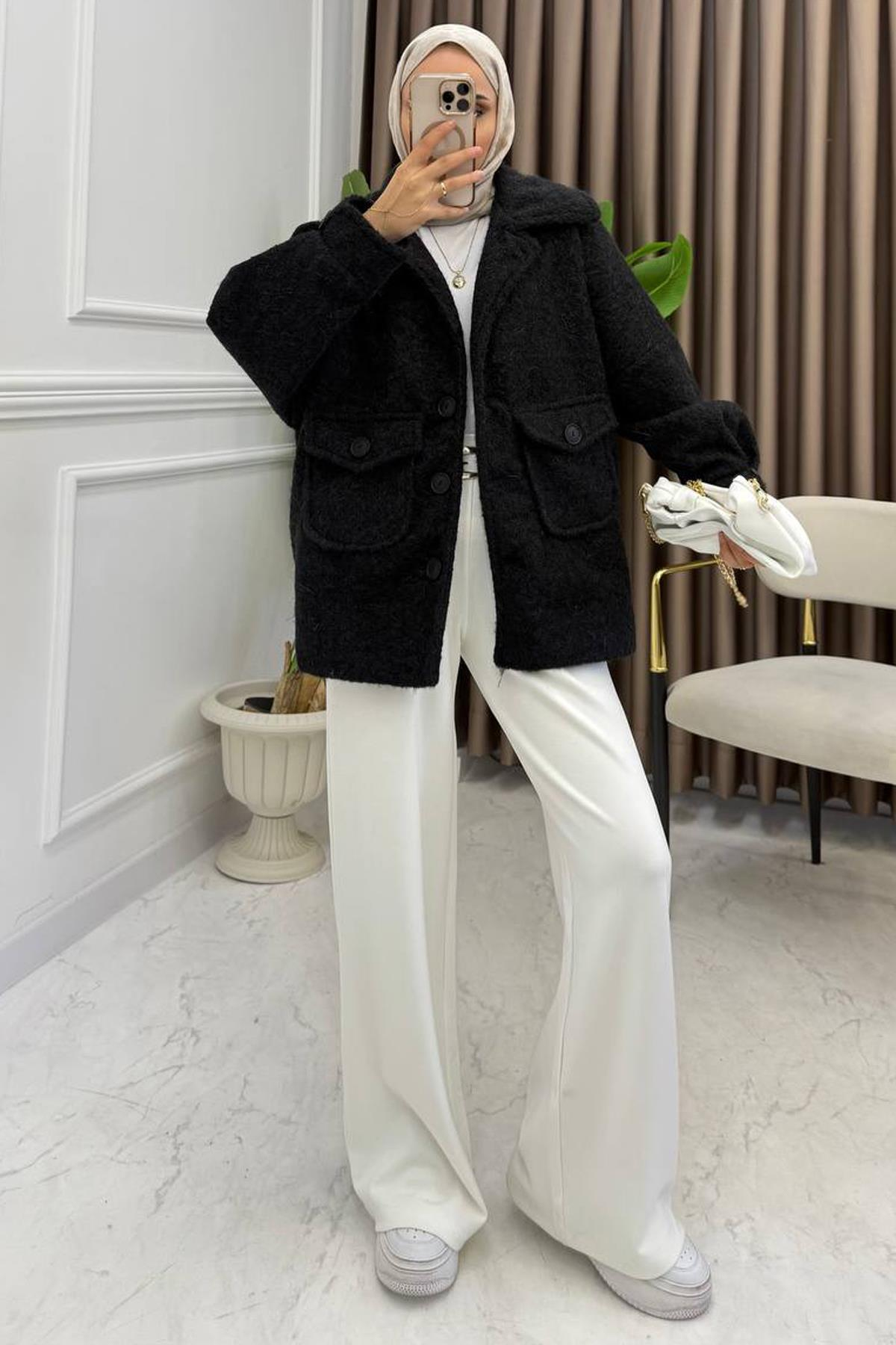 KAŞE DÜĞMELİ CEKET SİYAH (203478)