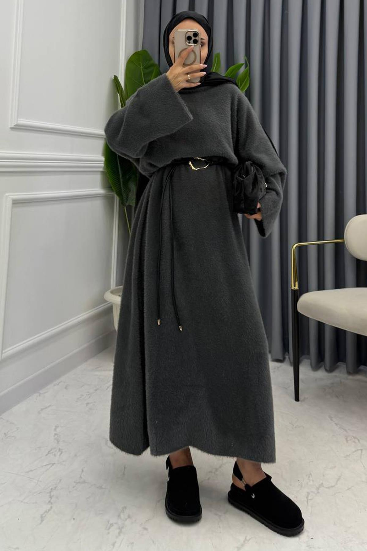 PELUŞ TRİKO ELBİSE GRİ (203433)