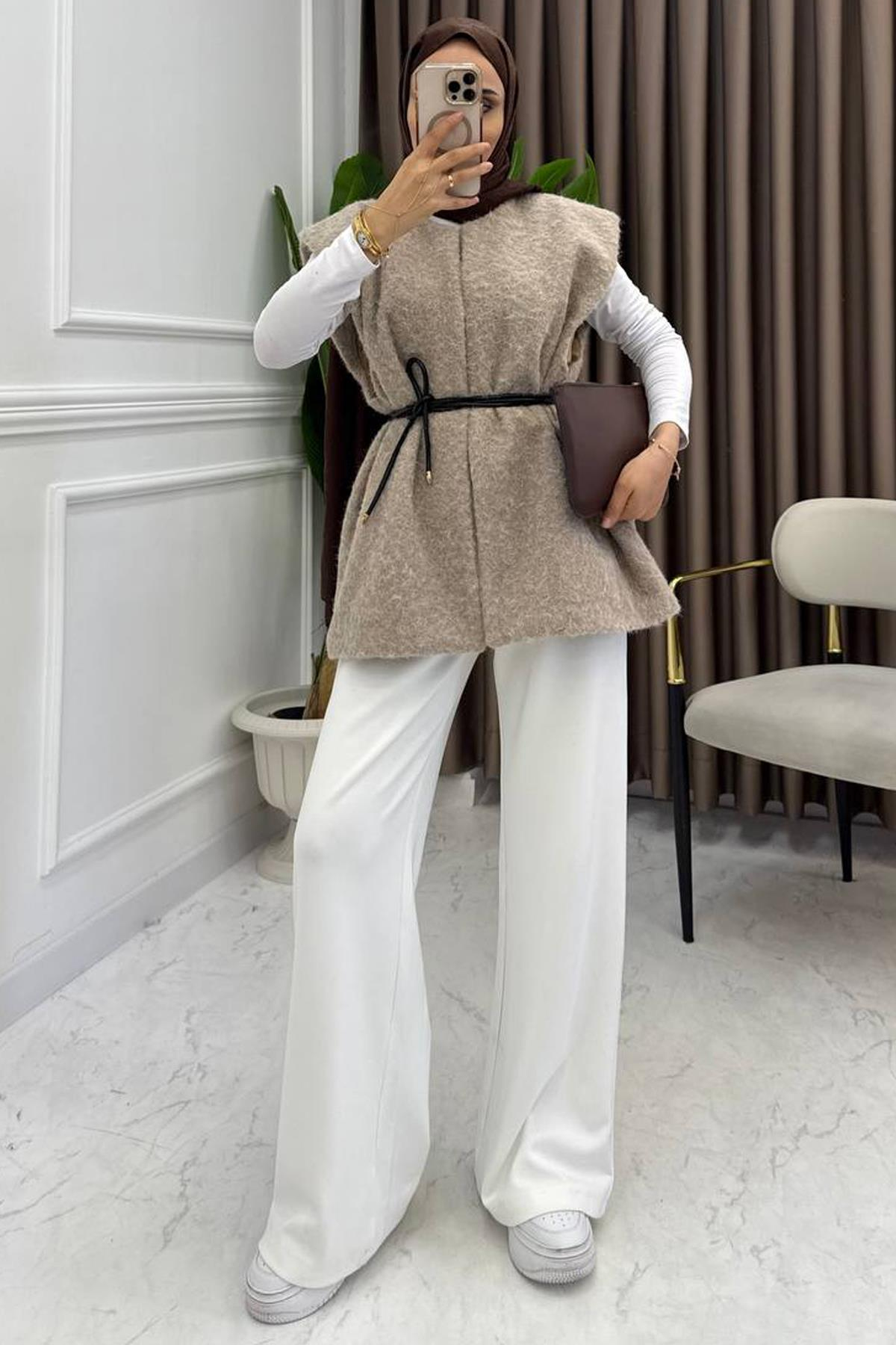 PREMİUM KAŞE KEMERLİ YELEK BEJ (203475)