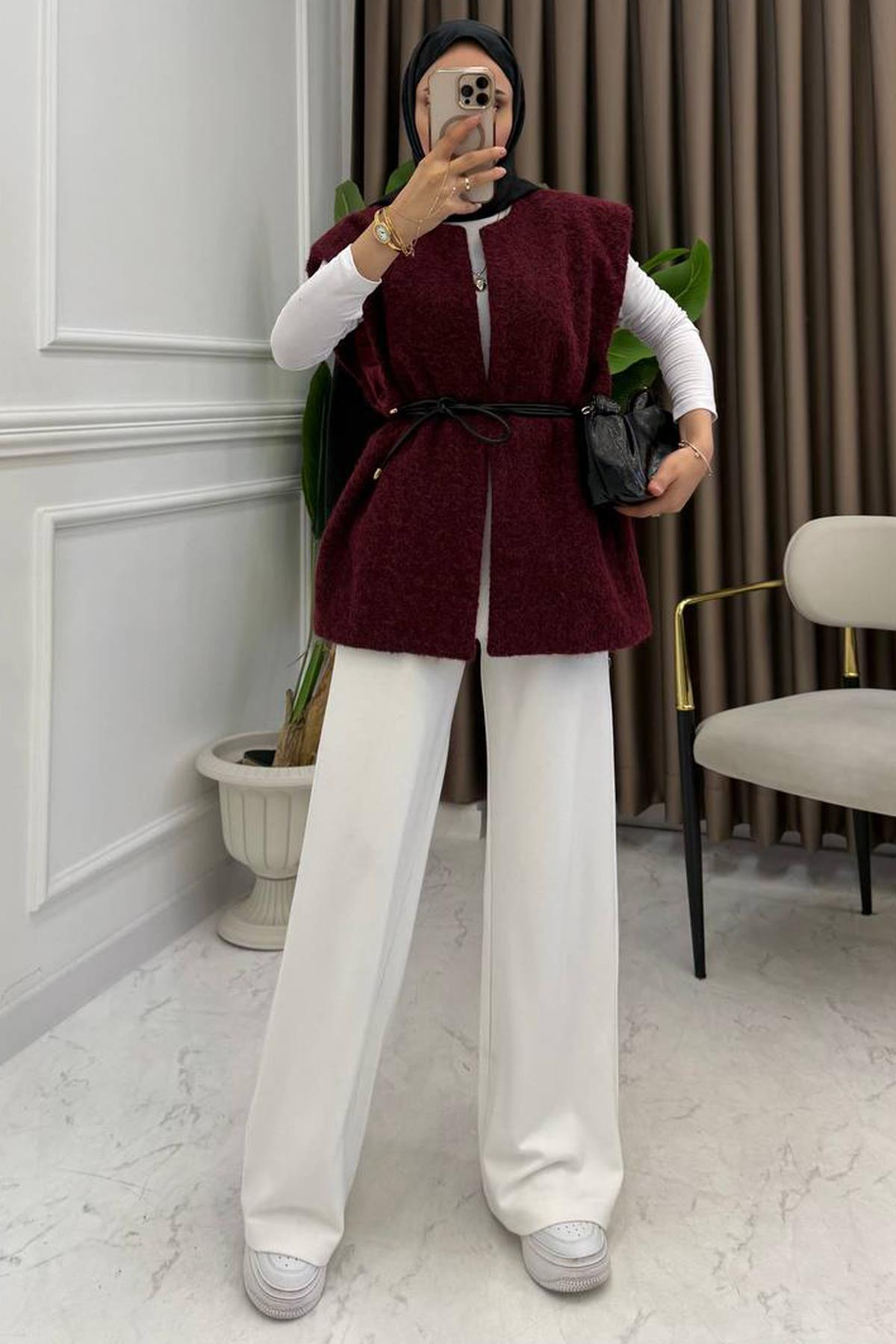 PREMİUM KAŞE KEMERLİ YELEK BORDO (203475)