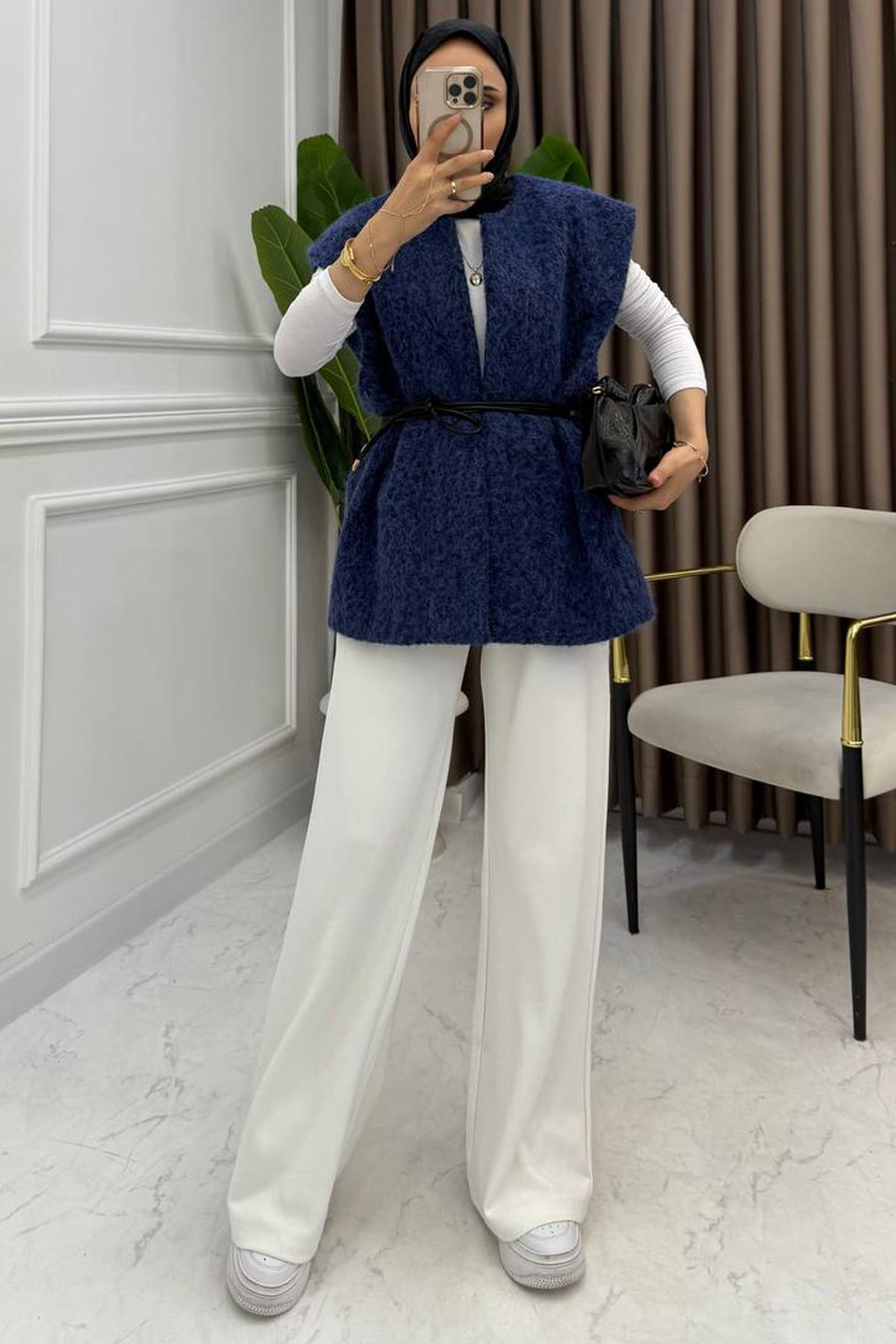 PREMİUM KAŞE KEMERLİ YELEK LACİVERT (203475)