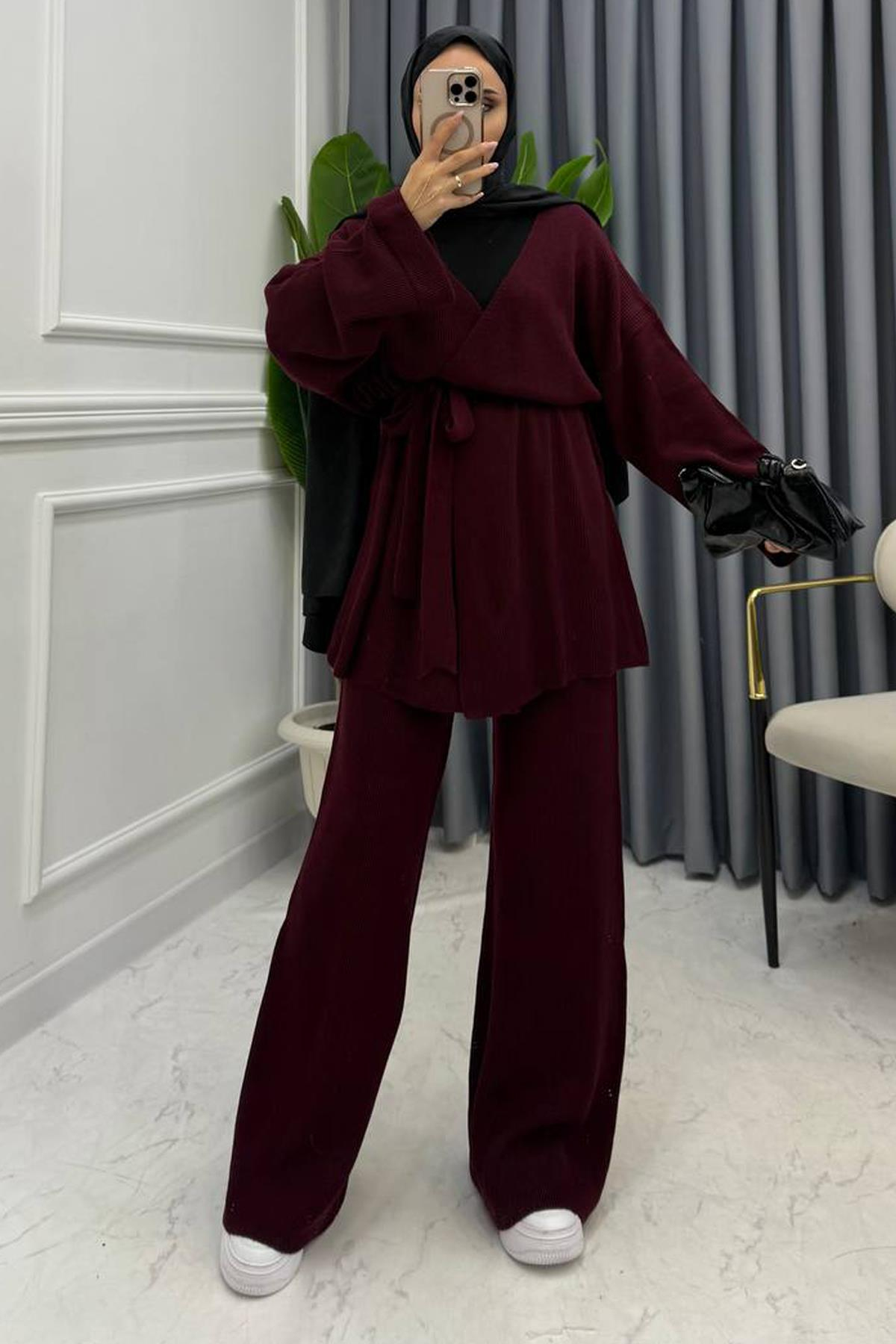 ŞAL YAKA TRİKO TAKIM BORDO (203434)