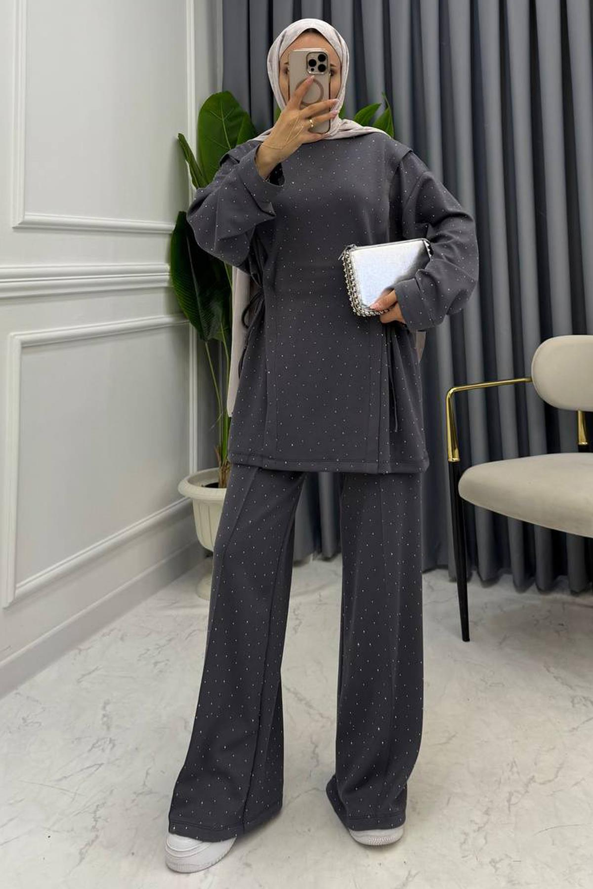 TAŞLI İKİLİ TAKIM GRİ (203436)