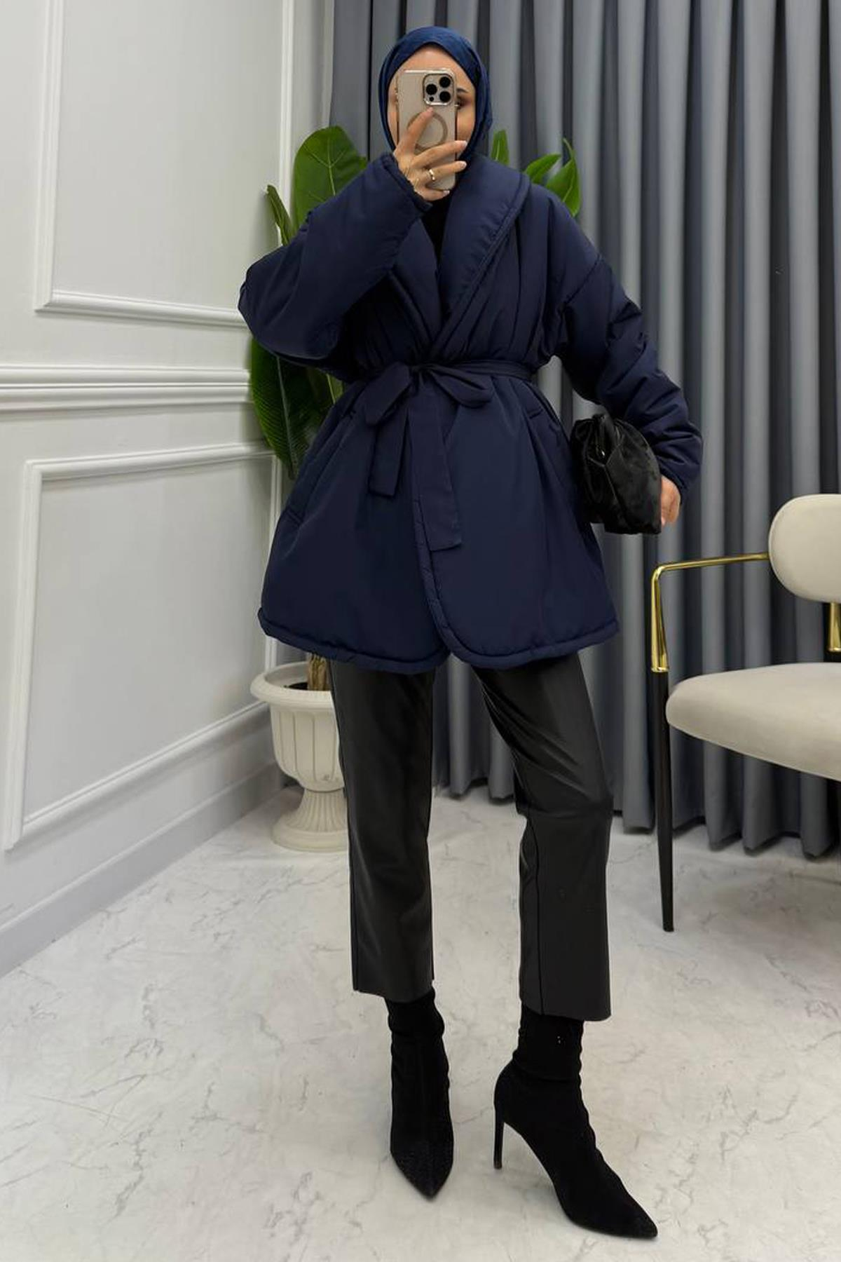 YAKALI ŞİŞME KEMERLİ MONT LACİVERT (203454)