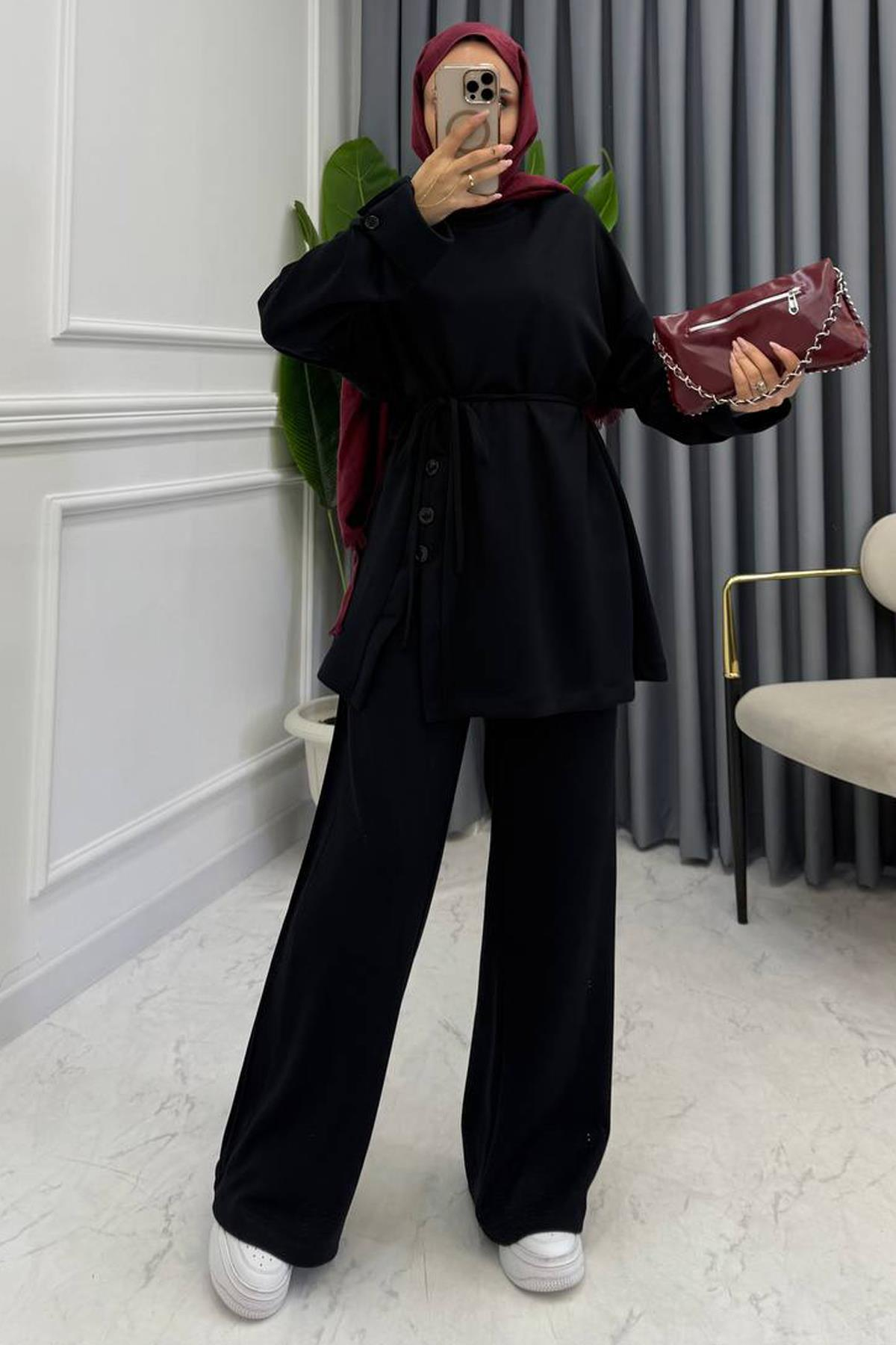 YIRTMAÇ DETAY İKİLİ TAKIM SİYAH (203447)